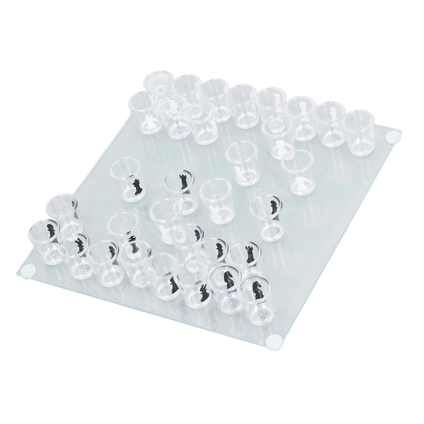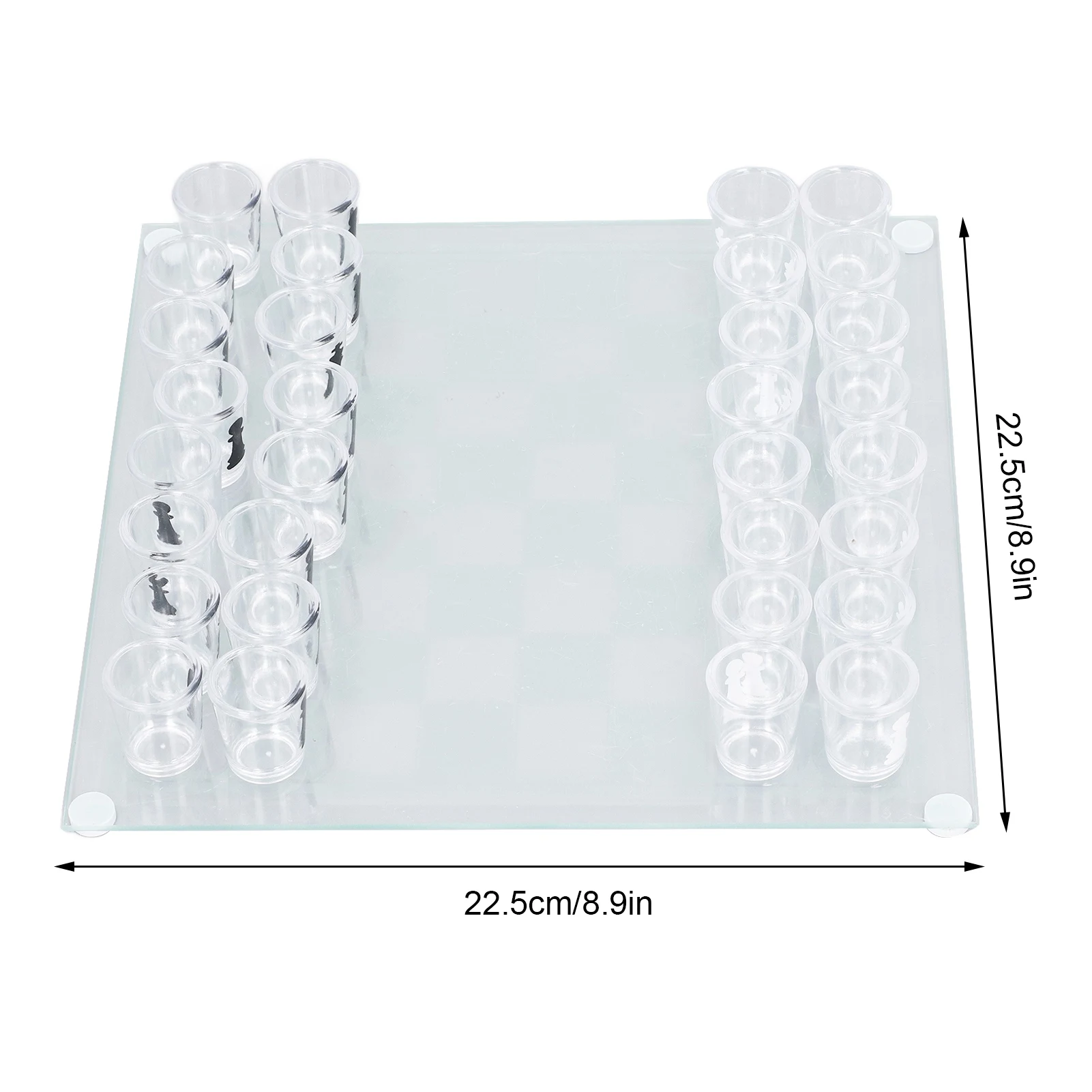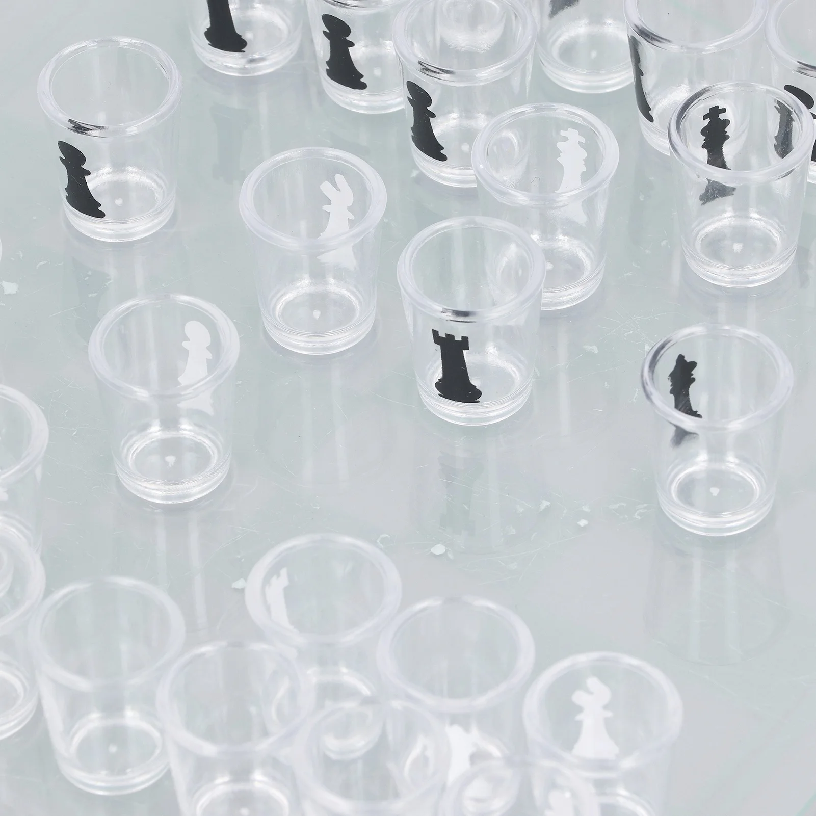 Shot Glass Chess Set Drinking Game Set Chess Board with Shot Glass Chess Pieces 22.5x22.5cm
