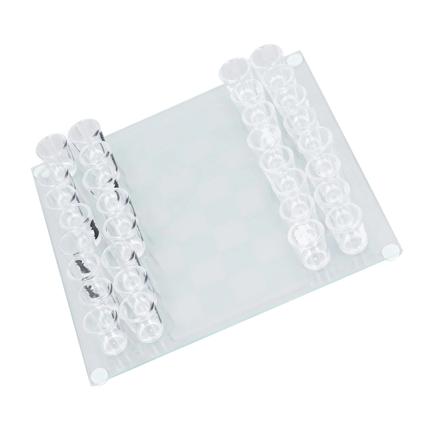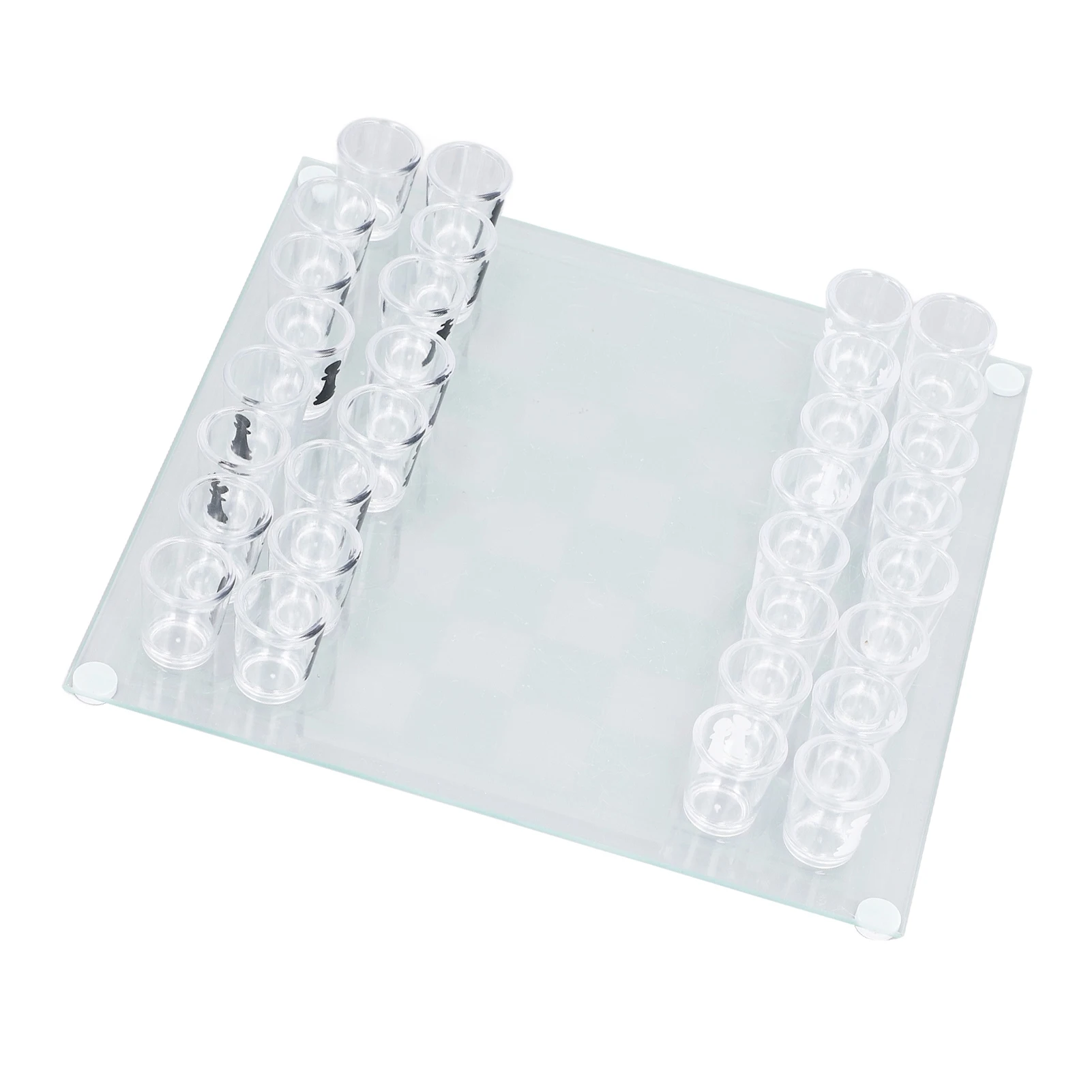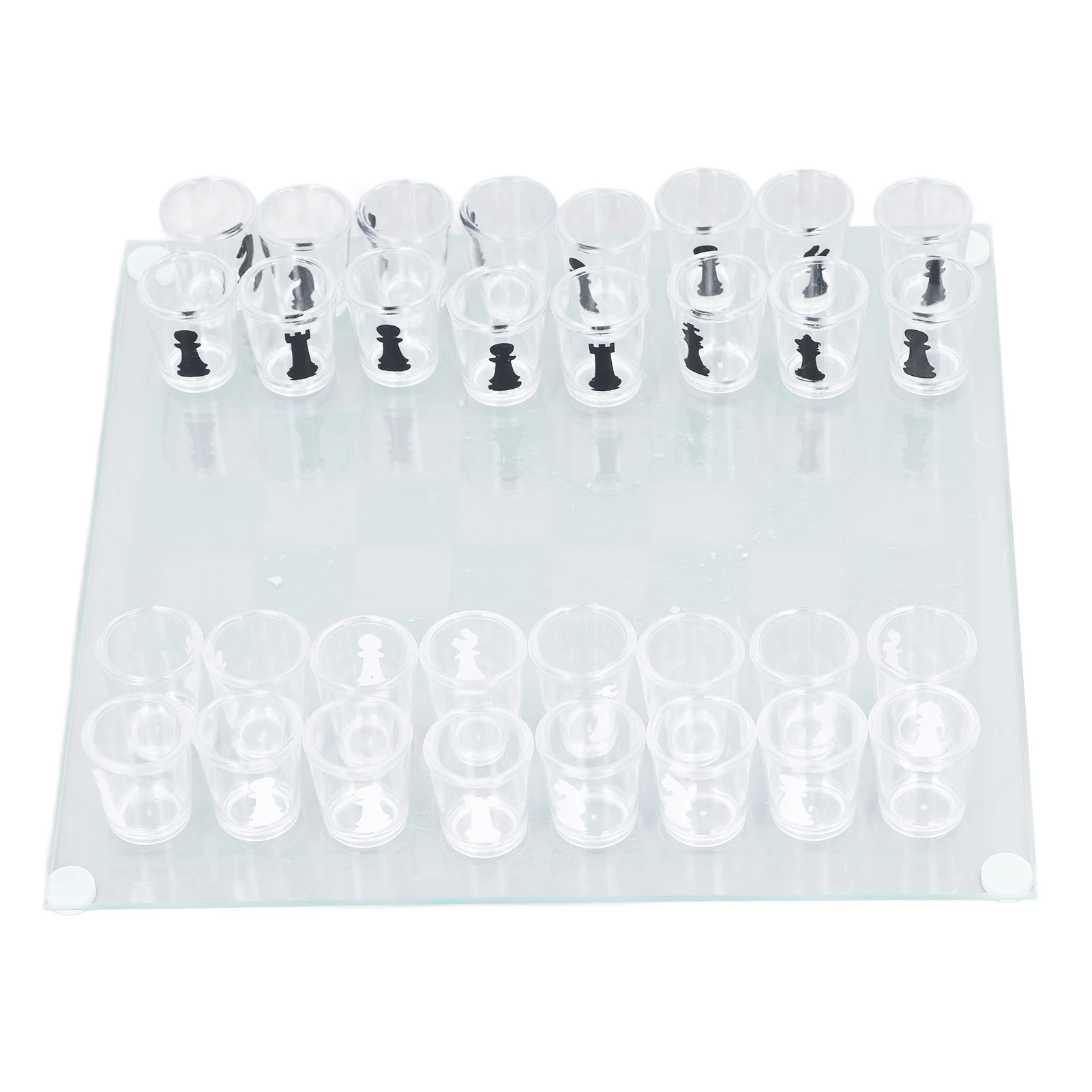 Shot Glass Chess Set Drinking Game Set Chess Board with Shot Glass Chess Pieces 22.5x22.5cm
